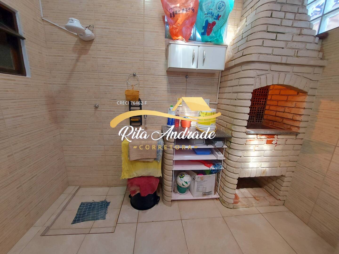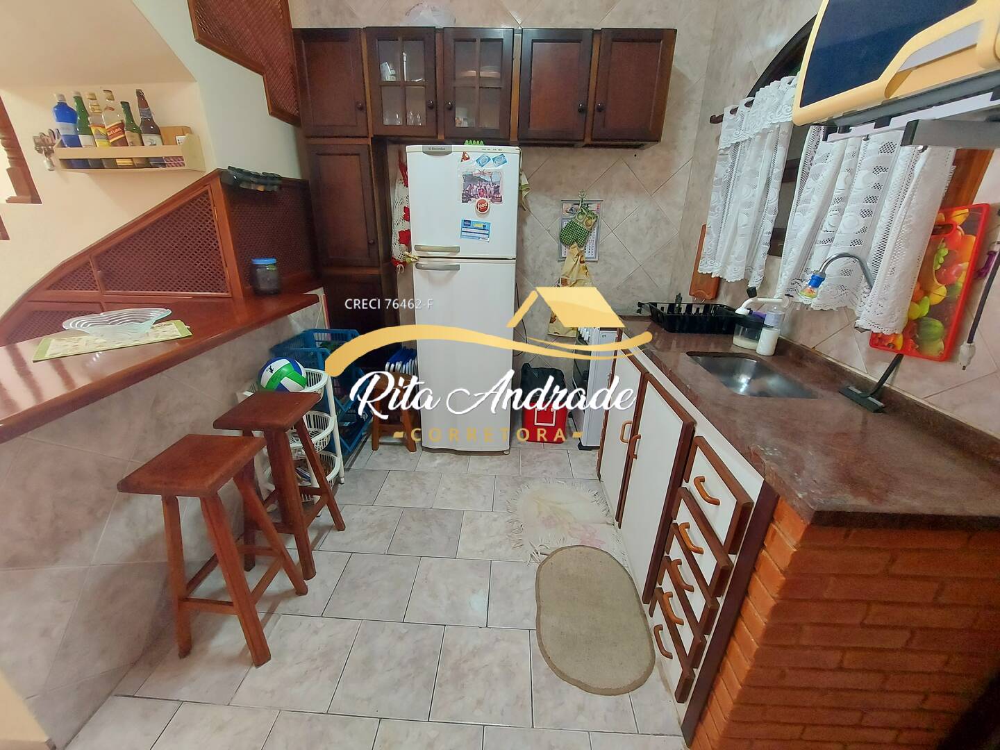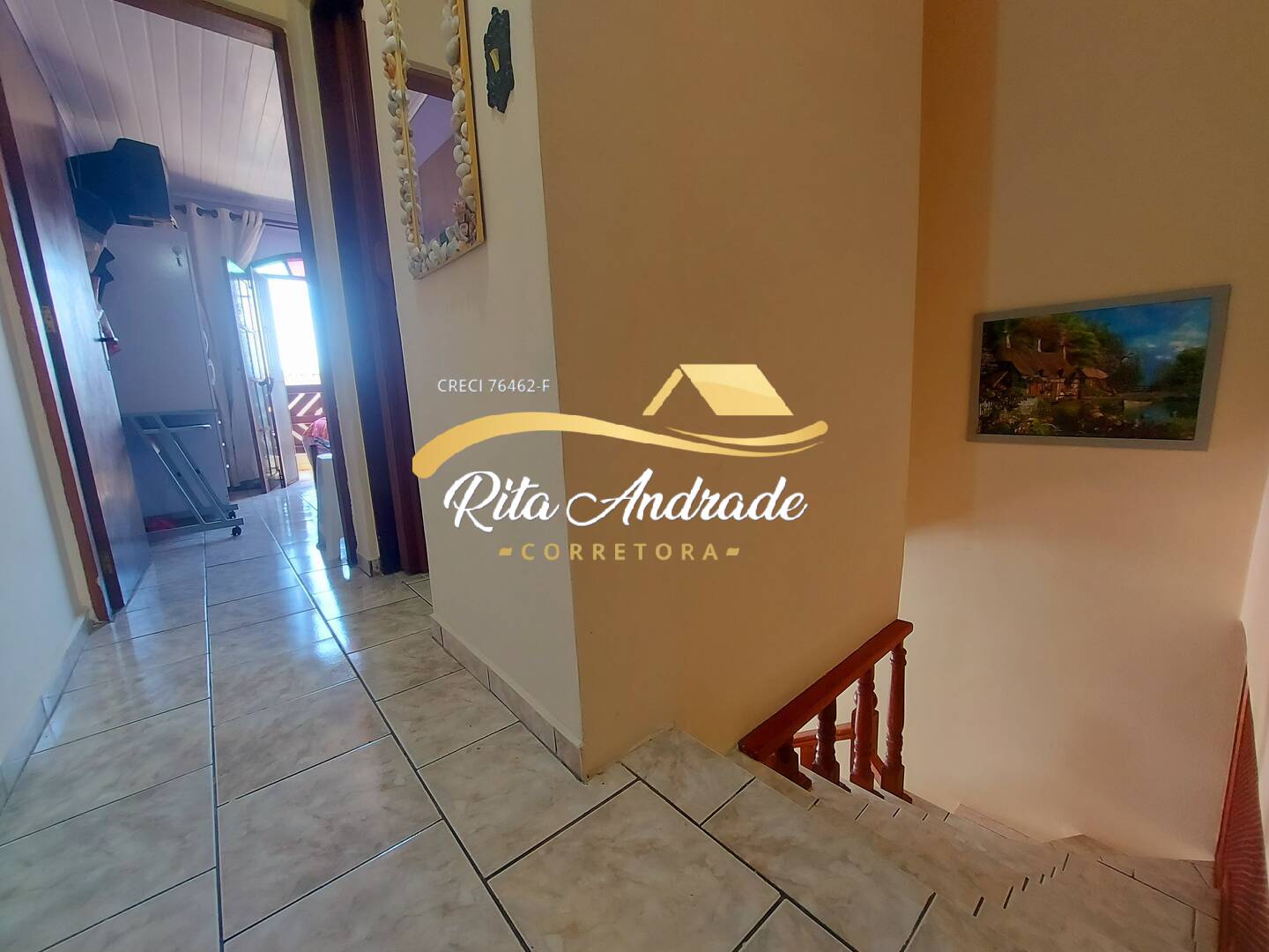 Internamente na frente área ampla privativa com jardim e varanda - sala 2 ambientes - armário embaixo da escada - cozinha estilo americana - balcão - armários - nos fundos área de lazer coberta e revestida com churrasqueira - lavabo - lavanderia coberta